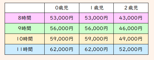 (給食費・おやつ代・おむつ代・おしりふき代・おむつ処理代・布団リース代を含みます)